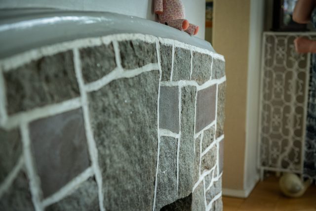 Att han jobbat som murare är något som syns i husets konstruktion, i allt från naturstenarna som finns inmurade i husknutar och skorstenar till de magnifika öppna spisarna som finns placerade på flera ställen.