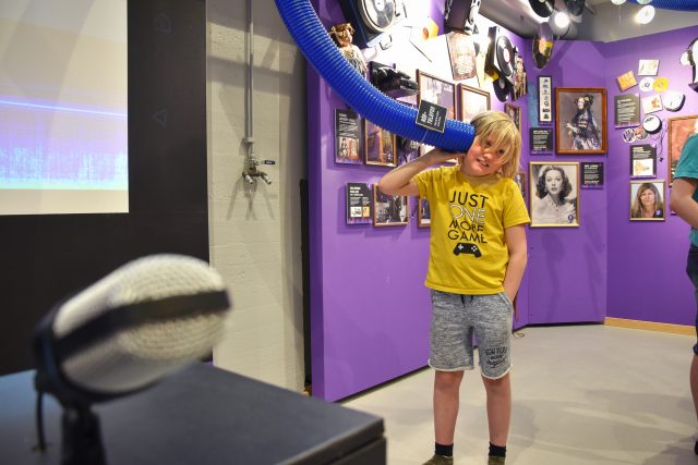 Här kan man samtidigt lära sig saker, på ett kul sätt. Till exempel vad ljud är, hur örat fungerar eller om resan från speldosa till Spotify. Det är så här Exploratoriet jobbar.
