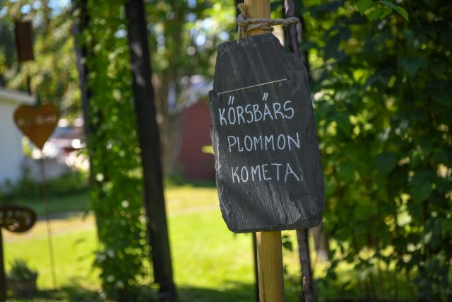 – När vi köpte den här kolonilotten 2008 fanns inget mer än äppelträden och några pallkragar. Vi hade egentligen inte haft så stort intresse av att odla fram till dess, men det har vuxit sig större med tiden, berättar Marie när vi sätter oss ner i skuggan med varsitt saftglas.