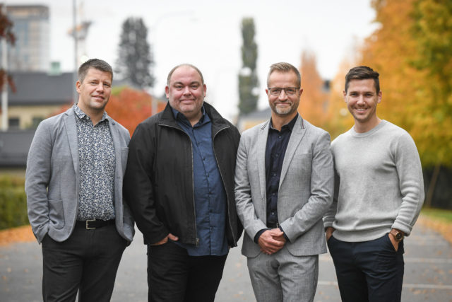 Sebastian Sandsten, ekonomichef Norr Media, Peter Ziolkowski, delägare Megafonen, Mats Ehnbom, vd Norr Media, Magnus Lindkvist, delägare Megafonen.