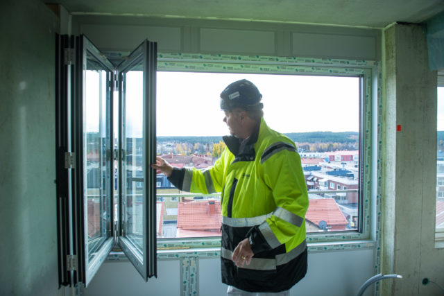 – Alla lägenheter i huset håller hög standard med stora fönster. När jag utvecklar ett projekt så vill jag alltid att det ska vara någonting extra, säger han och visar hur ett av de stora fönstren går att skjuta åt sidan så att det blir näst intill utomhuskänsla, trots att vi är inomhus.