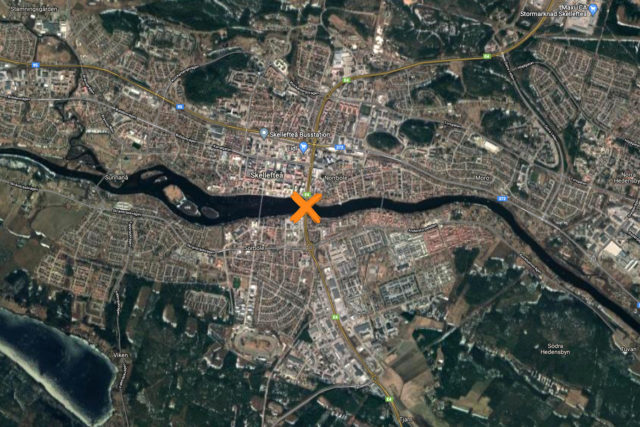 Larmet kom klockan 14.31 på fredagen. Enligt angivna koordinater ska singelolyckan ha inträffat mitt på bron. I larmet framgår det inte i vilket körfält som olyckan skett.