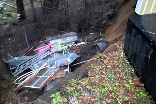 SOS larmades vid tre-tiden på måndagseftermiddagen. Marken hade då gett vika på en villatomt i Kusmark, vid en slänt mot bäcken som passerar genom byn. Träd slets med och skadade fasaden till huset, som fick utrymmas, och området spärrades av.