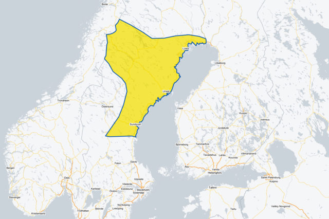 Varningen gäller stora delar av Norrland. Enligt SMHI väntas underkylt regn på kalla vägbanor, vilket kan orsaka problem i trafiken samt fördröja utryckningsverksamhet och hemtjänst. Det finns samtidigt risk för förseningar inom bland annat busstrafik.
