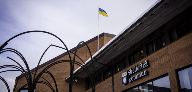 Det var vid klockan 8 på fredagsmorgonen som kommunalråd Evelina Fahlesson (S) och oppositionsråd Andreas Löwenhöök (M) möttes utanför stadshuset för att hissa ukrainsk flagg.