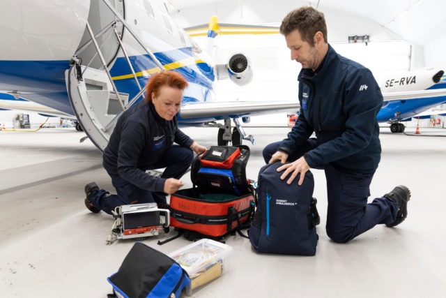 Kommunalförbundet Svenskt Ambulansflyg, KSA, hämtade ukrainarna i polska Warsawa. De kommer nu att erbjudas vård på svenska sjukhus. Med på planet var specialistutbildade sjuksköterskorna Mats Värnlund från Region Västerbotten och Mariell Renman från Region Västernorrland, för att ta hand om patienterna.