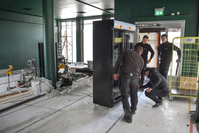 Bitarna föll på plats, och de har inte sett tillbaka. I dag har bland annat väggar, pelare och tak målats i samma dova, skogsgröna nyans som på de andra restaurangerna. Mycket återstår ännu att fixa, men leveranserna rullar in och personalfrågan är redan löst.