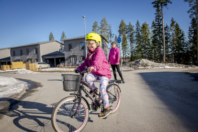 • 6-åriga Moa cyklar med mamma Josefin på Turgatan vid Falkträsket.