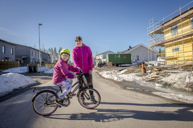 – När man är ute på promenad kan man se att “oj, det där huset stod inte där häromdagen”. Det går så fort när husleveranserna kommer, säger de och skrattar.
