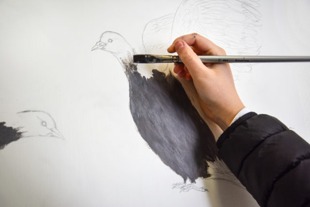 – Det var ett uppdrag som kom väldigt lägligt. Jag är ingen höjdare på att måla just fåglar, men Elina målar fåglar hemma och skulle just ut på praktik, berättar han.