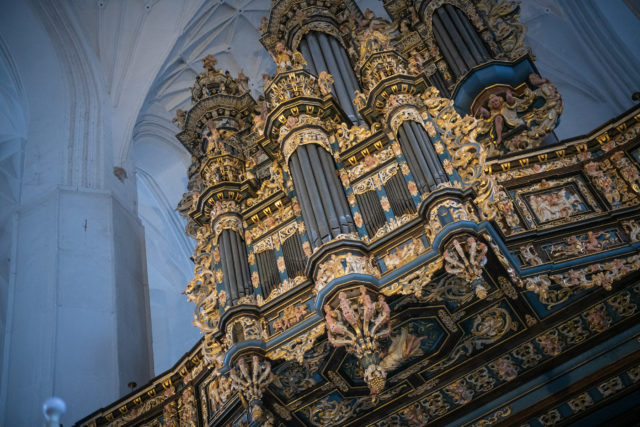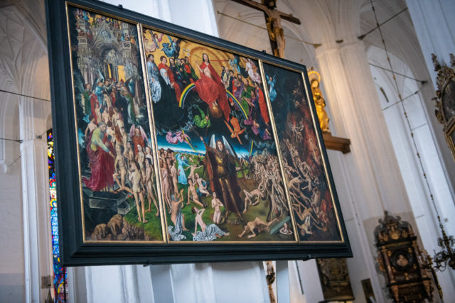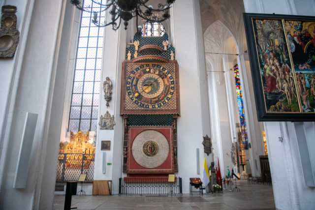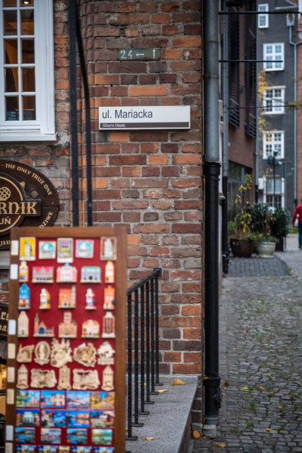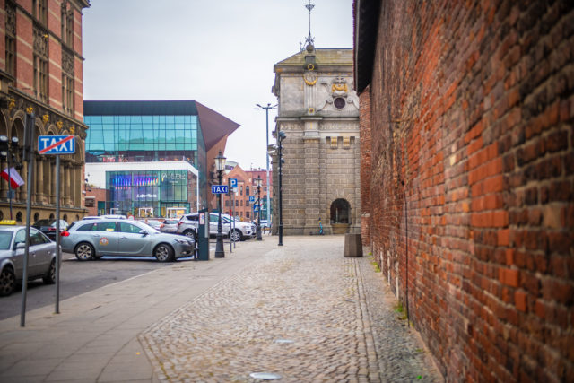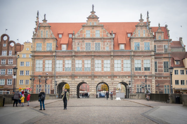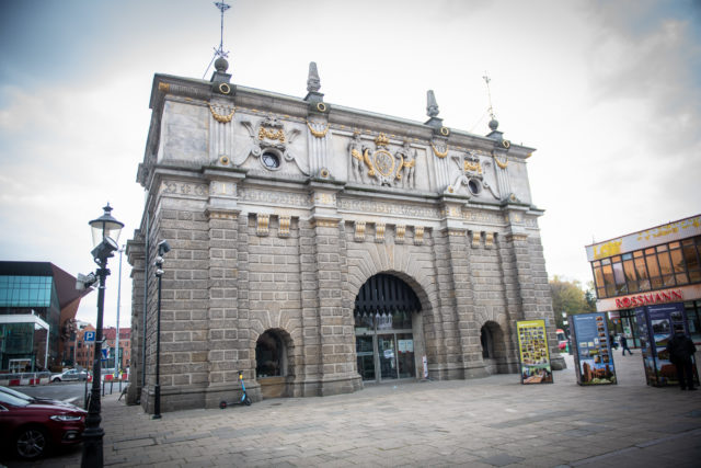 – Det här är en av få byggnader som överlevt alla krig. Gdańsk stadskärna förstördes till 75-80 procent under andra världskriget, men just den här porten blev bara förstörd lite på toppen, och har nu restaurerats så som den såg ut innan, berättar hon.