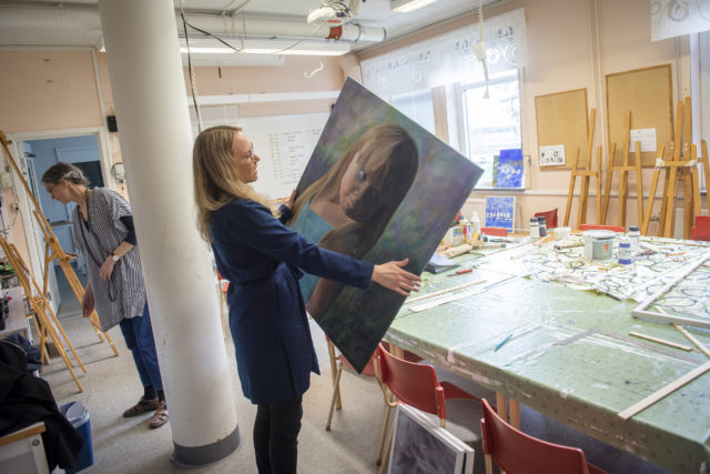 – Utställningen är dels ett tillfälle för oss som skola att visa konstlinjen och bredden av tekniker och uttryck man kan lära sig hos oss. För eleverna handlar det också om att lära sig att våga ställa ut och visa sin konst, säger konstläraren Åsa Wallmark.