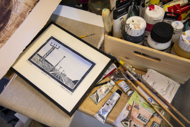 – Det är inte bara målningen utan nu när det ska ställas ut är det passpartout, såga lister och allt.