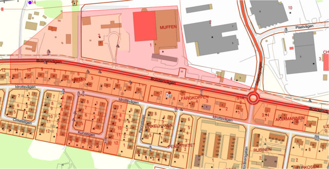 Det är det rödmarkerade området som berörs. Källa: Skellefteå kommun