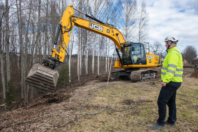 • Swerock Transport & Maskin arbetar vid Peabs bostadsbygge vid E4 i Skellefteå.