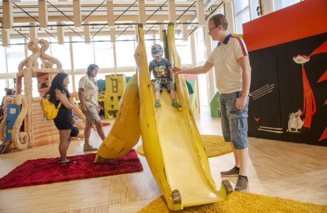 – Är man bara nyfiken och tycker om att leka kommer man att tycka om det här, sa Anna Jirstrand Sandlund, vd för Sara kulturhus, i sitt invigningstal.