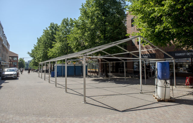 • Stråket på Trädgårdsgatan kommer vara plats för snabbmat och knallar. Här kommer också ytterligare ett restaurangtält, Kaffelino, att stå. Foto: Jonatan Stålhös.