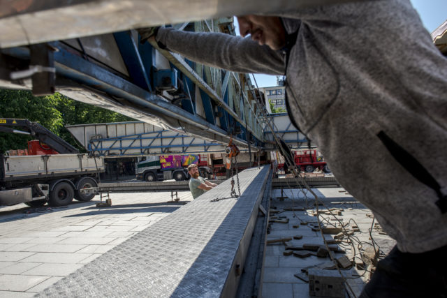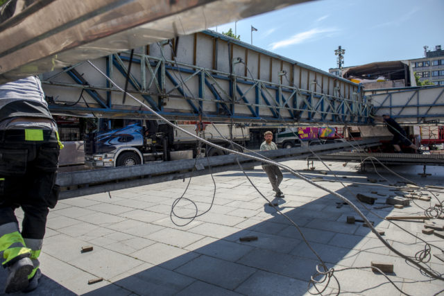 Under tisdagen stängs Storgatan av nedanför Stadshotellet för att börja arbetet med att resa Stora scenen.
