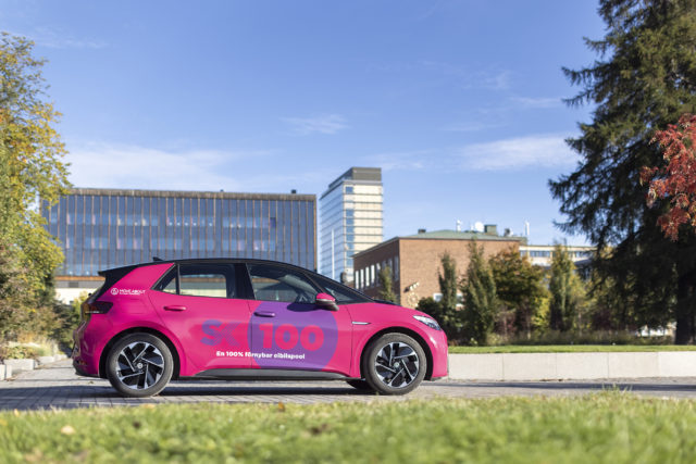 Konceptet med den förnya elbilspoolen SK100 bygger på att Skellefteå Kraft hyr ut sina elbilar till allmänheten efter arbetstid.
