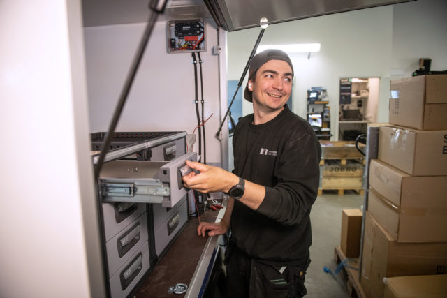 – Vi har flera kunder som flyttat över sina befintliga inredningar till nya bilar vid två och ibland tre tillfällen, där varje bil rullat i cirka fem år. Det betyder alltså att inredningen hållit måttet i ungefär 15 år. Det bör man ha i beaktande när man väljer leverantör, säger Peter som även lyfter fram att de fixar alla eventuella garantifrågor på plats i Skellefteå.
