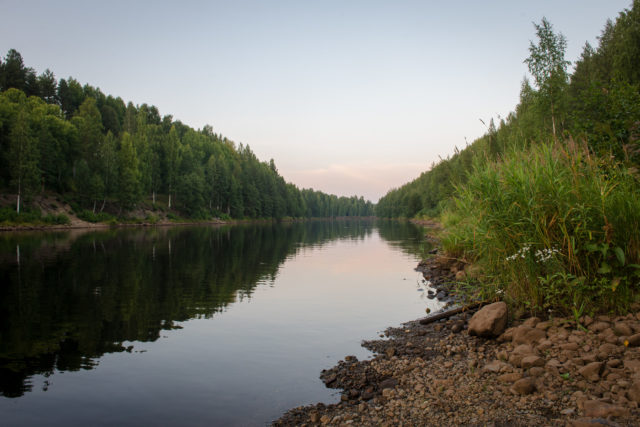 Solen har börjat sänka sig över Skellefteälven. Vattnet krusar och det plaskar kraftigt från stora fiskar som trycker just under ytan.