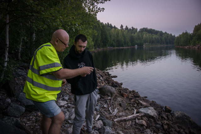Johan förklarar deras utmaningar att upptäcka ryckfiskare. De patrullerar vid älven så ofta de kan, men måste hålla sig nära bilen utifall att det skulle inkomma mer akuta larm.