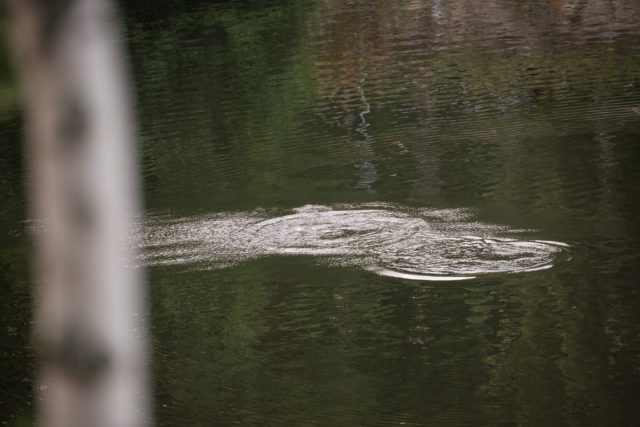 Här, vid Mobackendammen, tar det stopp för de fiskar som lämnat havet för att simma uppströms i älven. Resultatet blir stora ansamlingar av lax och öring.
