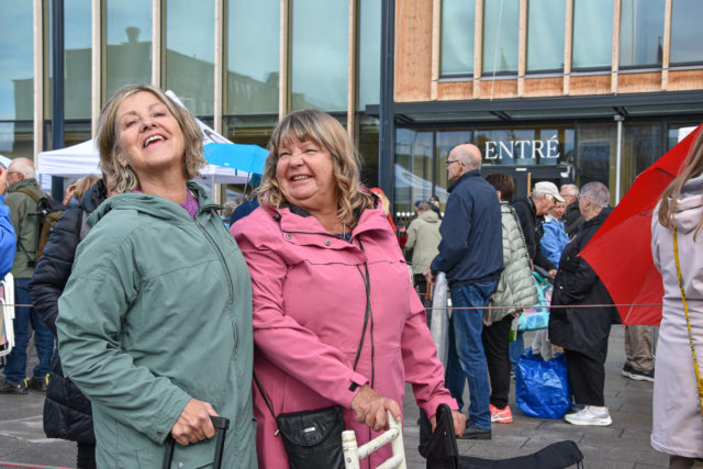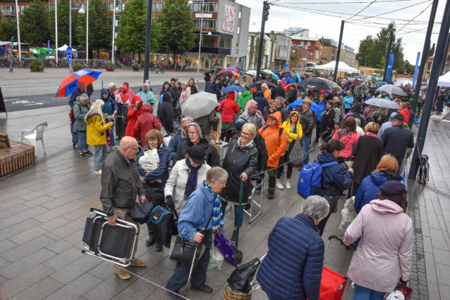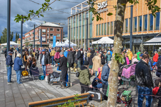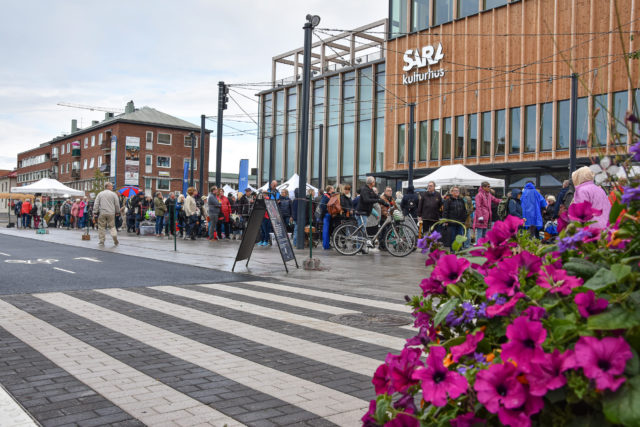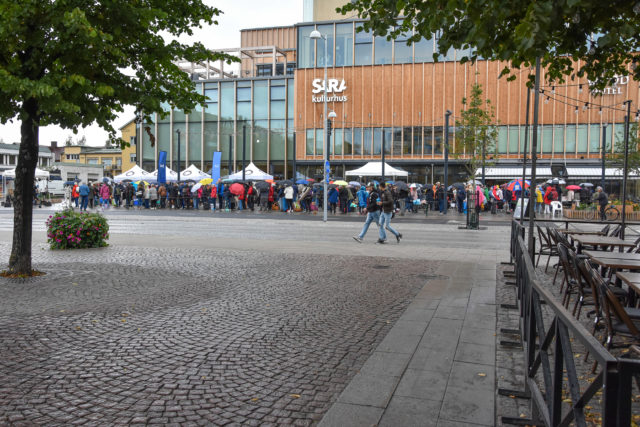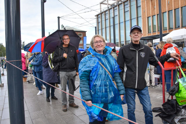 Det märks att dagen är efterlängtad. Kön ringlar sig över stenplattorna utanför Sara kulturhus redan innan det roliga dragit igång. Vädret är sisådär till en början, men stämningen hög, och många kommer förberedda med paraplyer, regnponchos och kaffe i termos.
