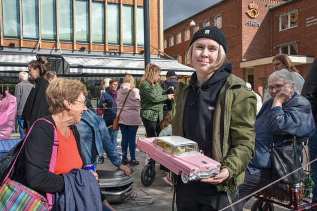 • Skelleftebon Maja Lundgren har samlarbilar med sig, bland annat en rosa i ypperligt skick.