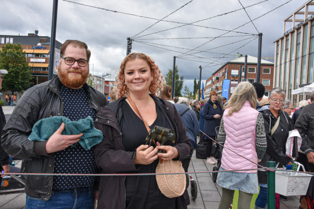 • Hanna Rajala och Jan Björk har rest ända från Boden, med lampor och glasvaror i bagaget.