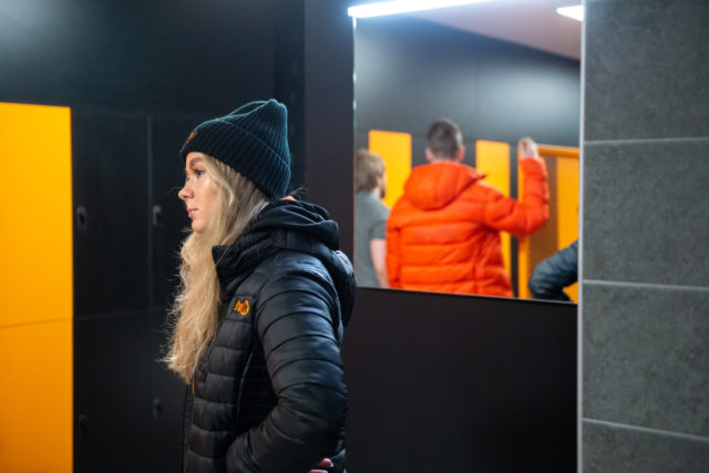 De har velat skapa en öppen och inbjudande miljö. Byggare har slagit ut flera väggar, uppgraderat ventilationen och sett över alla ytskikt. När gänget visar runt ligger också spinning-delen under ett tjockt, blått sken.