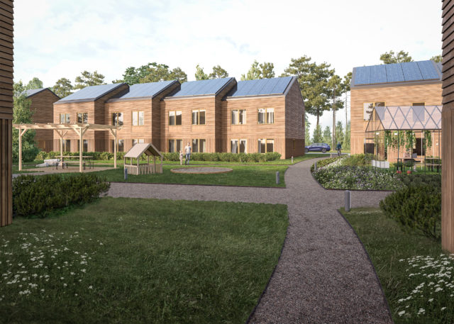 Gretabos vision för hur radhusen skulle se ut. Illustration: BAU