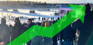 Skotern kommer upp för backen, från sommarstugeområdet nere vid den frusna älven, och Rasmus Brems-Hulgaard vinkar glatt bakom styret.