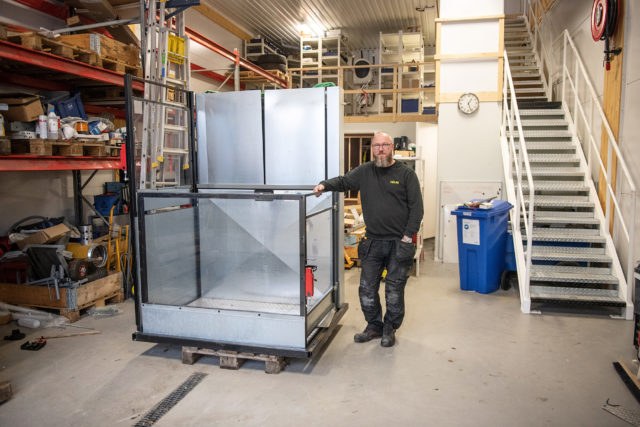 – Vi kan installera trappstolar, rullstolshissar, låglyftshissar och dörröppnare, berättar Robert Abrahamsson, platschef i Skellefteå.