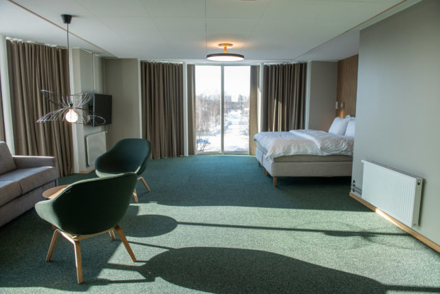 Vi tar en närmare titt på en av de nybyggda juniorsviterna. Belägen på sjätte våningen, med utsikt över natur och trädtopparna, levereras en svårslagen vy. Med smakfull inredning och fokus på detaljer ger rummen en wow-känsla när du kliver in.