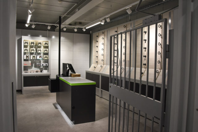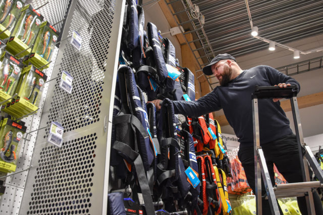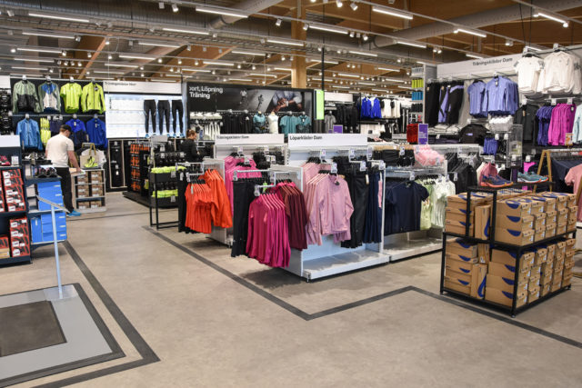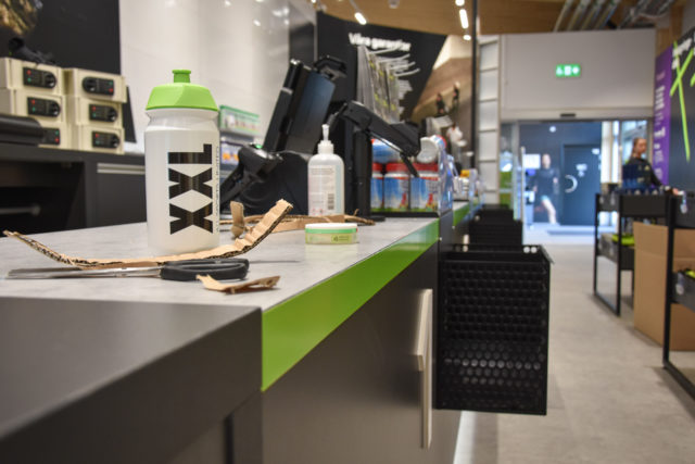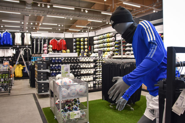 Butiken vimlar av rörelse när Megafonen hälsar på. XXL har ett särskilt team på plats för att bygga upp det hela. Allt luktar nytt och det hörs en blandning av dialekter när Linda Lindqvist visar runt bland hyllorna.