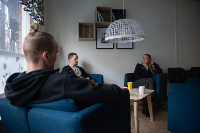 Kaffekokaren puttrar i fikarummet på Storgatan 34 där fältsekreterarna sitter i varsin blå fåtölj. De är fyra heltidsanställda inom fältverksamheten, som är en del av socialtjänsten.