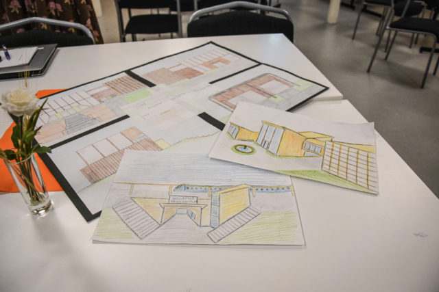 Uppgiften har varit att skapa en trygg, attraktiv och naturlig samlingspunkt för alla. Ett intressant men stort projekt att ta sig an, berättar eleven Gustav Bergh. De har utgått ifrån helhet, hållbarhet, byggbarhet och presentation.