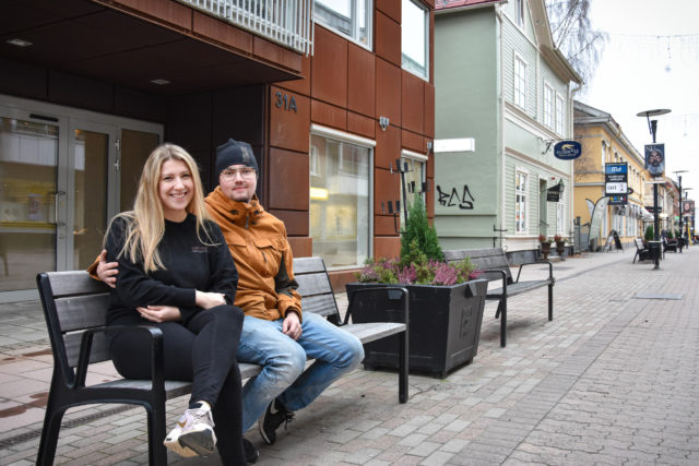 Affären ligger långt västerut på gågatan, i Skebo-huset med kopparlik fasad. Här har paret Nathalie Lindeborg och Jonathan Tornéus sålt barnkläder, leksaker och annat sedan slutet av 2021.