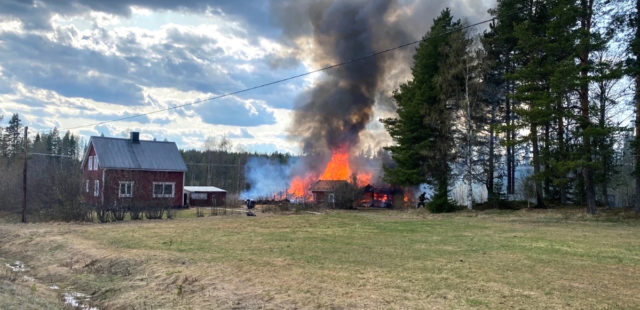 På söndagen rasade nya bränder. Två byggnader utanför Skellefteå har förstörts, ett mindre fritidshus utanför Storkågeträsk och en ladugårdsbyggnad söder om Boliden.