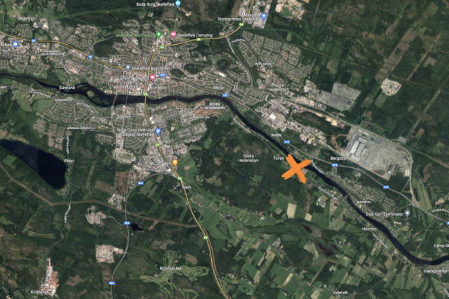 SOS larmades klockan 08.49 på måndagen. En singelolycka med en lastbil ska ha skett i Södra Tuvan. Enligt Trafikverket ska fordonet ha hamnat i diket.