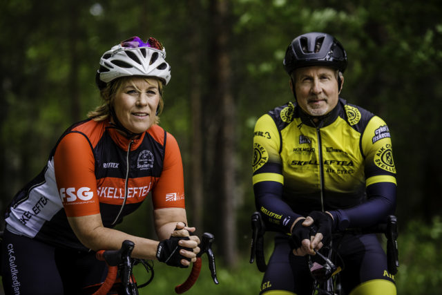 Helen Moritz, CK Guldkedjan och Nils Forsell, Skellefteå AIK Cykel, hoppas att fler ska hitta gemenskapen i cykelklubbarna. ”Vi möter ju många som cyklar ensamma längs vägarna. De får gärna haka på oss istället”, säger Helen Moritz. Foto: Jonatan Stålhös