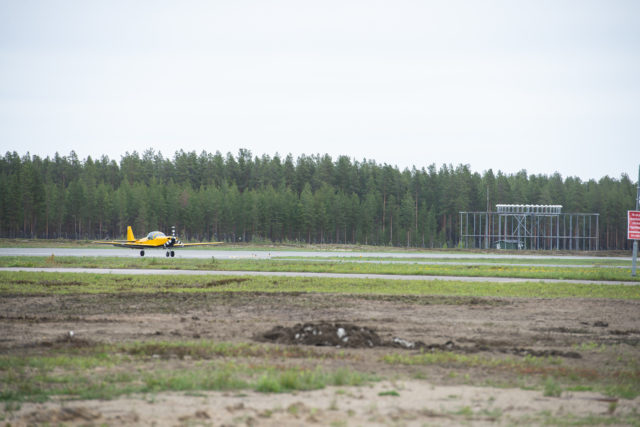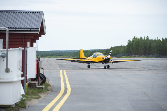 Vid första anblick verkar allt lugnt och stilla på flygplatsen i Skellefteå. Någon enstaka propeller brummar, annars hörs bara vinden som sveper in över det öppna området.