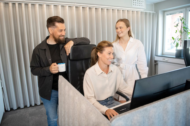 Andreas Ögren, Anna Petterström och Irma Öhlund är tre av sju som jobbar på Wikans kontor i Skellefteå.