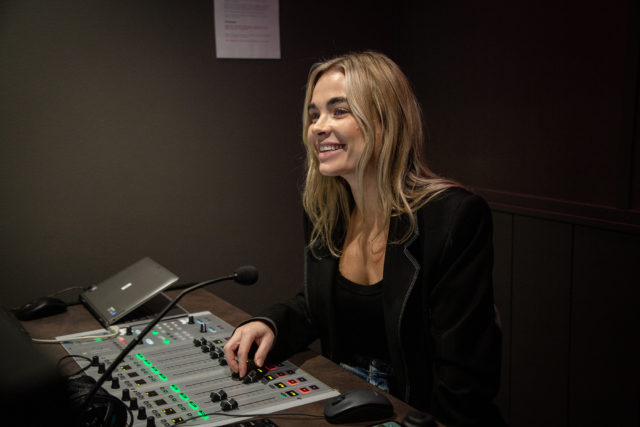 – Jag är ensam producent på Topp 1 i Sverige, och då gör jag allt från idé till att podden publiceras. Det handlar om att komma på idéer, kontakta intervjupersoner, skriva manus, spela in, klippa, musikläggning och publicering. Att komma på en idé och fullfölja den är det som jag tycker är det roliga, säger Maja Andersson.