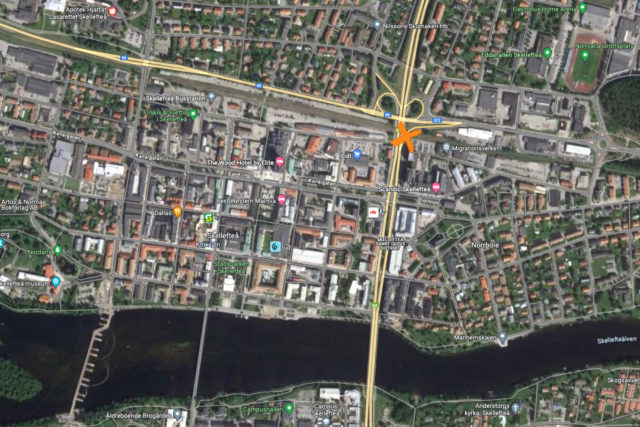 Olyckan inträffade intill E 4, på den norrgående påfarten till Norra Järnvägsgatan. En bilist ska ha kolliderat med en cyklist vid övergångsstället som korsar påfartsvägen.