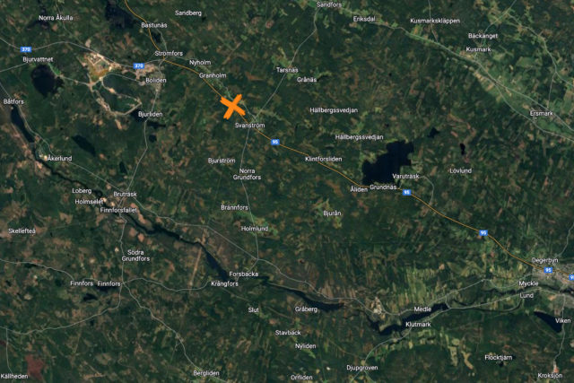 Branden ska ha startat under pågående färd och förloppet ha blivit häftigt. Föraren stannade på en parkeringsficka mellan Boliden och Svanström, SOS larmades klockan 21.59 och när räddningstjänsten dit fram var bilen bortom räddning.