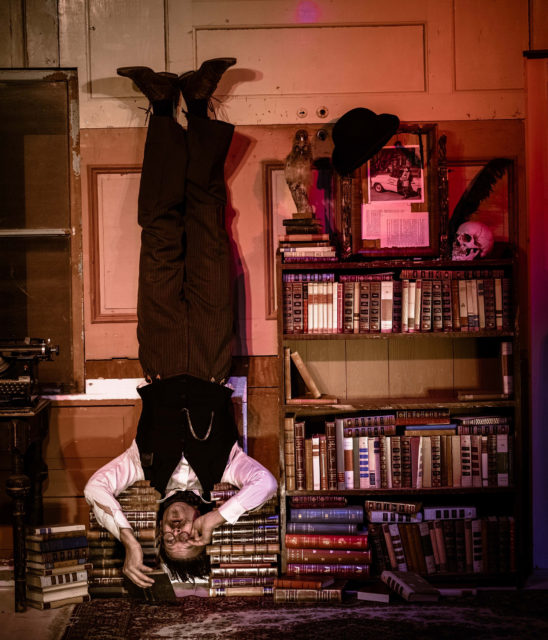 Det är en soloföreställning med scenartisten Daniel Oja vid Nordcirkus. Ekvilibrist, teaterskådespelare och litterär entusiast. Han har turnerat med Böckerna sedan 2022 och i veckan tar han showen till Skellefteå.