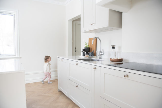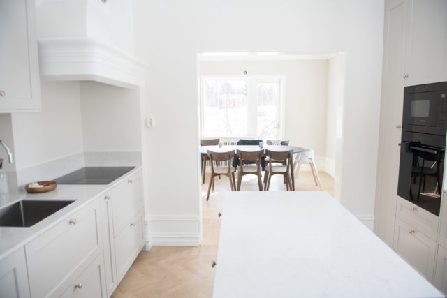 – Jag är egentligen ännu mer lagd åt det minimalistiska och moderna. Men för mig är det viktigt att vara sann mot husets ursprung, att försöka lyfta fram detaljerna som stärker det uttrycket, säger Frida.