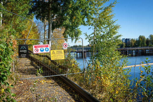 Karlgårdsbron i slutet av september. Då har arbetet stått still nästan hela sommaren. Foto: Jonatan Stålhös
